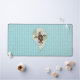 Callie la tortue de mer paisley hawksbill nage à travers l'eau peu profonde du lagon qu'elle appelle chez elle, à la recherche de son prochain snack. Un motif d'algues légères sur une base bleu pâle crée un cadre agréable pour la tortue de mer douce.