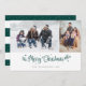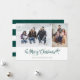 Cartes photos de Noël Joyeux vert personnalisé avec deux photos avec un titre calligraphique sur le devant et des rayures vertes et blanches à l'arrière. Personnalisez facilement ces cartes photo de Noël de calligraphie verte avec vos images, un nom de famille et l'année.