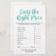 Ce jeu de calligraphie aquarelle "devinez le bon prix" est parfait pour un baby shower d'été pour garçons. Le devant de la carte de jeu comporte "devinez le bon prix", et le dos de la carte contient "ce qui est dans votre téléphone". Le design amusant et énergique est composé d'une police de script d'aquarelle vert turquoise et bleu aqua ombre. Personnalisez l'avant de la carte avec le nom de la mère à être et la date du baby shower. Vous pouvez personnaliser les questions du jeu en cliquant sur le bouton "personnaliser".