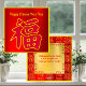 Découvrez le Nouvel An Chinois avec notre impressionnante carte de voeux du Nouvel An Chinois Calligraphie avec le mot chinois pour fortune. L'image est en rouge avec un contour en or gras et imprimée sur un arrière - plan rouge, semblable à un papier peint. Le rouge et l'or symbolisent la richesse, la prospérité et la chance qui sont des aspects traditionnels de la culture chinoise. Le texte au verso de la carte est personnalisable pour un accueil plus personnalisé.