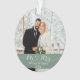 Script de calligraphie simple moderne minimaliste M. et Mme Heart Bride et Groom Mariage ornement photo avec Snowflakes retour. Vert sage