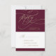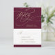 Cette carte RSVP simple de calligraphie bordeaux romantique est parfaite pour un simple mariage. Le design classique moderne comprend des tourbillons fantaisistes et des fleurs fantaisistes avec une superbe élégante typographie en faux champagne en or lettré. Remarque : Ce design ne comporte pas de véritable feuille d'or. C'est un graphisme de haute qualité fait pour ressembler à du papier doré.