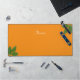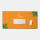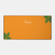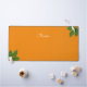 Belle calligraphie de script moderne et feuilles de laurier sur orange. Texte de nom prêt à être personnalisé.