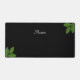 Belle calligraphie de script moderne et feuilles vert laurier sur fond noir. Texte de nom prêt à être personnalisé.