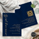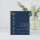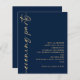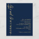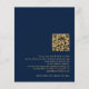 Budget Calligraphie QR Code Navy Blue and Gold Mariage Soirée invités. Une alternative de 4,5 x 5,6 po à prix réduit sur 110gsm semi-brillant semblable en épaisseur à une carte postale. Ajoutez votre code QR à votre site Web mariage au dos fait de cette option pratique pour vos invités à RSVP et voir tous les détails sans avoir besoin de RSVP séparé et de cartes de détails. Le stylish set script est tourné à gauche, avec tous les détails élégamment à droite avec beaucoup d'espace blanc pour une atmosphère contemporaine. Personnalisez facilement avec vos détails. Et changez la couleur du texte et de l'arrière - plan si vous le souhaitez via l'option Modifier plus.