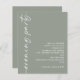 Budget Calligraphie QR Code Sage Vert Mariage Soirée invités. Une alternative de 4,5 x 5,6 po à prix réduit sur 110gsm semi-brillant semblable en épaisseur à une carte postale. Ajoutez votre code QR à votre site Web mariage au dos fait de cette option pratique pour vos invités à RSVP et voir tous les détails sans avoir besoin de RSVP séparé et de cartes de détails. Le stylish set script est tourné à gauche, avec tous les détails élégamment à droite avec beaucoup d'espace blanc pour une atmosphère contemporaine. Personnalisez facilement avec vos détails. Et changez la couleur du texte et de l'arrière - plan si vous le souhaitez via l'option Modifier plus.
