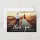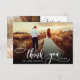 Elégant Boho Chic Calligraphy Mariage 2 Carte de remerciements photo. Simple mariage stylish merci modèle avec une photo verticale complète sur le devant avec le texte "Merci" dans une main tourbillonnant fantaisie lettrage typographie script swash tail police blanc overlay sur l'image et un côté inverse (1) photo et message de remerciement pré-fait. Carte recto verso avec 2 photos. Personnalisez facilement vos détails et votre message. Si vous préférez écrire votre note à la main, supprimez simplement l'exemple de texte pour gagner de l'espace. Si vous avez besoin d'aide ou de l'article correspondant, s'il vous plaît contactez-moi!