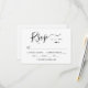 Les cartes de réponse de mariage à monogramme noir et blanc avec calligraphie moderne élégante et minimaliste présentent un design typographique chic et stylé avec script calligraphique. Avec monogramme du couple avec motif de cœur. Texte personnalisé minimaliste qui peut être personnalisé avec la date limite de réponse. Le design comprend une ligne pour le(s) nom(s) de l'invité, la participation à l'événement, le choix de repas et le nombre total d'invités participants.