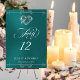 Le design présente un élégant fond sarcelle orné de bordures en volutes, d'un cœur et d'espaces réservés pour le numéro de table, les noms des mariés et la date de l'événement. Disponible en plusieurs couleurs pour votre thème de mariage. Conçu pour se coordonner avec la collection de mariage Romantic Scroll Hearts & Calligraphy. Pour modifier les détails, cliquez sur « Personnaliser ». Pour déplacer le texte ou modifier la taille, la police ou la couleur du texte, cliquez sur « Cliquez pour personnaliser davantage ».