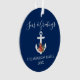Script de calligraphie élégant Mer nautique et salutations Marine Ornement bleu. Ancre surmontée d'aquarelle florale y compris poinsettias rouges, cônes de pin et autres belles verdure d'hiver.