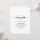 Cette invitation minimaliste à la calligraphie pour bébé sprinkle est parfaite pour un baby shower rustique. Le design sobre et élégant présente une typographie de script classique et sophistiquée en noir et blanc.