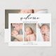 Partagez la grande nouvelle de l’arrivée de votre petit avec cette carte de faire-part minime photo de calligraphie. Ce modèle est conçu pour présenter la photo la plus douce de votre nouveau-né; il comprend une calligraphie douce et moderne, une typographie et une disposition propre qui maintient votre bébé au coeur du design. Customisez-le avec le nom, la date de naissance, le poids et le message spécial de votre bébé à vos amis et à votre famille. Ce modèle est idéal pour partager vos bonnes nouvelles, envoyer des courriels à des proches, ou cadrer comme un souvenir de vie.
