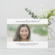 Cette faire-part moderne annonce la nouvelle du grand jour de votre diplômé. Personnalisé avec vos informations de diplômés en dessous. À l'arrière, une zone facultative pour les amis invitations et la famille à une célébration de graduation.