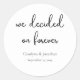 Cet autocollant minimaliste présente une phrase minimaliste moderne "Nous avons décidé pour toujours" en police manuscrite moderne. Il est facile de personnaliser pour correspondre à vos couleurs, styles et thèmes mariages. Pour modifier les détails, cliquez sur "Personnaliser". Pour déplacer le texte ou modifier la taille, la police ou la couleur, cliquez sur "Modifier à l'aide de l'outil de conception". Conçu pour coordonner avec pour la collection de Faire-part de mariage "Carolyna", les articles correspondants disponibles. N'hésitez pas à contacter si vous avez des questions concernant la conception du produit ; je suis heureux de vous aider !