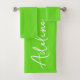 Ce joli ensemble de serviettes personnalisées porte un nom personnalisé. Il peut faire un grand cadeau pour petite amie, femme, maman, soeur. Vous pouvez facilement changer les couleurs de l'arrière - plan et de la police si vous le souhaitez.