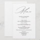 Menu mariage de calligraphie noire, idéal pour un mariage moderne et minimaliste romantique. Le design présente une typographie élégante et charmante sur un arrière - plan blanc à l'allure simple et propre. Veuillez me contacter pour toute aide sur la personnalisation ou si vous avez besoin d'un autre produit avec ce design.