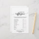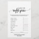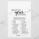 Ce simple jeu de calligraphie noire "What's in your phone" est parfait pour un baby shower rustique ou moderne. Le devant de la carte de jeu comporte "devinez le bon prix", et le dos de la carte contient "ce qui est dans votre téléphone". Le design minimaliste présente une typographie élégamment simple et un coeur charmant. Personnalisez l'avant de la carte avec le nom de la mère à être et la date du baby shower. Vous pouvez personnaliser les questions du jeu en cliquant sur le bouton "personnaliser".