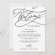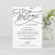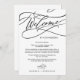 Ces calligraphies romantiques lettre d'accueil et cartes d'itinéraires sont parfaites pour un mariage simple. Le design classique moderne comprend des tourbillons fantaisistes et des fleurs fantaisistes avec une magnifique typographie élégante et lettrée à la main. Le recto de la carte comporte une lettre de bienvenue et le verso de la carte indique l'itinéraire du mariage. Ces notes sont parfaites pour les mariages de destination et les sacs de bienvenue des clients de l'hôtel.