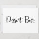 Un panneau de calligraphie simple et belle "Dessert Bar". Cette enseigne en lettres moulées peut être utilisée pour ajouter un style moderne dans les réceptions de mariage ou toute fête pour indiquer le bar à cocktails. NOTE _______________________________________________________________________________________________________________________________________________________________________________________________________________________________________________________________ Il s'agit d'un panneau de 6,5 po x 8,75 po, en cliquant sur le bouton "customiser", vous pouvez accéder aux outils de conception pour modifier la taille et la forme, ainsi que vous pouvez ajouter une couleur arrière - plan. Pour faire correspondre ce panneau à votre style mariage, vous pouvez choisir entre 12 options papier uniques. Pour une sensation rustique, utilisez le kraft artisanal, pour ajouter un peu de glam utilisez le shimmer perle. ________________________________________________________________________________________________________________________________________________________________________________________________________________________________________________________________