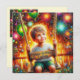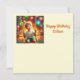 Un jeune garçon mignon balança sur une balançoire d'arbre et célèbre l'anniversaire de Callum. Les salutations sur la carte sont "Happy Birthday Callum". Sur le dos de la carte se trouve une petite version de l'image avant, et beaucoup de place pour écrire un message. Fabriqué avec l'aide d'AI Bing.