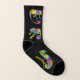 Ces chaussettes amusantes présentent des illustrations de caméléons dans un style de dessin animé mignon dans des couleurs vives et vibrantes sur un fond noir.