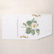 Élégante illustration botanique du Camellia japonica « Alba Plena », le camélia blanc classique, mettant en valeur ses fleurs d'un blanc immaculé aux étamines dorées, son feuillage luxuriant vert foncé et ses rubans dorés, le tout accompagné de son nom latin écrit en une élégante écriture italique.