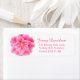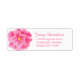 Élégant étiquette de adresse de réponse de mariage avec une fleur de camélia rose printanière peinte en aquarelle sur un arrière - plan blanc. Idéal pour la coordination avec les mariages roses et blancs ou pour les mariages à thème de la camélia fin hiver / début du printemps. Une partie de l'ensemble mariage d'aquarelle de camélia. Peinture et design uniques par Sarah Trett. www.sarahtrett.com pour mylittleedenweddings.com