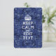 Votre personnalisation Keep Calm vous dit sur un décor de camouflage numérique bleu marine. Un style personnalisé Keep Calm en disant sur un cadeau de nature. Essayez humour ou fantaisie sur vos mots créatifs sur deux lignes de texte modifiables. N'oubliez pas d'utiliser les lettres CAPITAL pour obtenir les meilleurs résultats. Les motifs de broderie sont disponibles dans une large sélection d'options de couleurs populaires. Utilisez le lien "Demandez à ce concepteur" pour nous contacter avec vos demandes de design spécial ou pour obtenir de l'aide sur vos besoins de personnalisation.