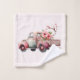 Serviette avec une jolie illustration d'aquarelle blanche. Couleurs rose et rose. Camion ramassage avec un dossier/lit en bois ancien avec fleurs de cerisier.