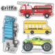 Feuille d'autocollants pour les garçons ou les filles avec des camions et des formes de bus. Un camion de pompiers, un autobus scolaire, un camion monstre et un camion à ordures sont présentés sur cette feuille, qui est disponible en plusieurs tailles. Inclure le nom du garçon/de l'enfant si vous le souhaitez, ou supprimer l'exemple de texte. Idéal pour les filles qui aiment aussi les gros véhicules ! Utilisez pour la journalisation et le scrapbooking ou ajoutez à des gâteries spéciales pour l'enfant.