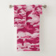 Ces serviettes de bain en camo girly disposent d'un motif camouflage dans les tons rose foncé et rose pâle.
