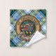 Le badge Campbell crest entouré d'une sangle et boucle sur l'arrière - plan écossais habillé. Texte personnalisé sur chaque serviette.