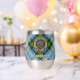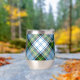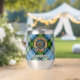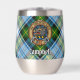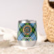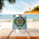 Le badge Campbell crest entouré d'une sangle et boucle sur l'arrière - plan écossais habillé. Texte personnalisé des deux côtés.