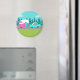 Ce Camper Rétro / Remorque et Magnet de voiture présente un dessin de dessin minimaliste moderne du milieu du siècle qui vous laissera prêt à prendre la route ouverte. Hommage aux années 1950, ce design présente une voiture turquoise vintage au sommet blanc, tirant une remorque kitschy vers sa destination finale. Le RV rétro, parfaitement restauré, a une moitié inférieure rose chaude, une moitié supérieure blanche et un éclair turquoise séparant les deux. La porte du côté du camping est également turquoise. L'accent final est l'aile rose chaud qui monte de l'arrière de cette maison sur roues. Les campeurs heureux roulent sur une route grise. La route est entourée d'herbe verte et luxuriante. Dans l'arrière - plan, on peut voir les silhouettes turquoises d'une véritable forêt de cèdres, contre un ciel d'aqua aux nuages bouffants et bleu clair. Ce design est parfait pour tous, des hippies à la retraite, des hipsters en herbe, ou tous ceux qui veulent revivre de grands souvenirs d'enfance. La meilleure partie est que personne ne demande : "Sommes-nous encore là ?"