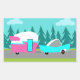 Ces Stickers Camper Rétro / Remorque et Voiture disposent d'un dessin humoristique moderne et minimaliste du milieu du siècle qui vous laissera prêt à prendre la route ouverte. Hommage aux années 1950, ce design présente une voiture turquoise vintage au sommet blanc, tirant une remorque kitschy vers sa destination finale. Le RV rétro, parfaitement restauré, a une moitié inférieure rose chaude, une moitié supérieure blanche et un éclair turquoise séparant les deux. La porte du côté du camping est également turquoise. L'accent final est l'aile rose chaud qui monte de l'arrière de cette maison sur roues. Les campeurs heureux roulent sur une route grise. La route est entourée d'herbe verte et luxuriante. Dans l'arrière - plan, on peut voir les silhouettes turquoises d'une véritable forêt de cèdres, contre un ciel d'aqua aux nuages bouffants et bleu clair. Ce design est parfait pour tous, des hippies à la retraite, des hipsters en herbe, ou tous ceux qui veulent revivre de grands souvenirs d'enfance. La meilleure partie est que personne ne demande : "Sommes-nous encore là ?"