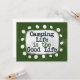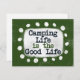 Une pièce typographique amusante sur le thème du camping avec les mots "Camping Life is the Good Life". Il est vert et blanc avec du texte en noir et vert et des points blancs qui entourent la phrase.