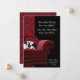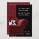 Canapé en velours damassé rouge avec chien chiot noir et blanc changement d'adresse faire-part.
