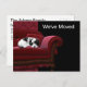 Canapé en velours damassé rouge avec chien chiot noir et blanc changement d'adresse faire-part.
