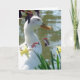Canard Blanc En Daffodils Bonne Carte Pâques. Un canard blanc convivial se balade sur le bord de l'eau avec les jolis jolis jonquilles. Une journée parfaite au bord du lac. Joli soleil brille dans l'eau et réchauffe les canards. Une scène joyeuse, joyeuse et relaxante à apprécier à Pâques. L'avant de la carte est la photo du canard en jonquilles près du lac. A l'intérieur, on peut lire "Bonne Pâques". (personnalisable)