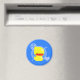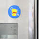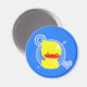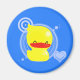 Joyeux canard jaune souriant sur un aimant bleu vif !