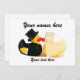 Canards en caoutchouc mariés s'embrassant. Chapeau haut de forme et queue de pie avec perles. Invitation ou carte de mariage mignonne qui peut être personnalisée avec votre propre texte, noms, date et images.