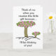 Des rubans roses dans un arbre avec des mots disant pensez à moi quand vous recevrez ce petit cadeau parce que je pense que vous faites une carte mignonne.