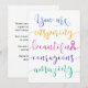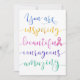 Rappelez à quelqu'un qui lutte contre le cancer du sein de se rappeler qui elle est avec ce design de typographie de style calligraphique unique, présentant ce message dans un style aquarelle coloré : "Vous êtes inspirante, belle, courageuse, incroyable." Le "L" dans le mot "belle" est un ruban rose de sensibilisation au cancer du sein.