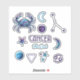 Celebrate the intuitive and protective nature of Cancer with this beautifully detailed zodiac sticker collection. Featuring celestial artwork of the Crab, the Cancer constellation, zodiac symbol, Water element symbol, and Moon ruling planet symbol, this design is surrounded by dreamy moons, planets and stars for a magical cosmic feel.