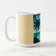 A stylish Cancun travel mug inspired by classic airline destination posters from the golden age of travel.