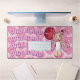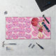 A desk mat with my chibi design with a dessert theme. She comes from the land of sweets and is a cute and adorable anime girl. wearing a chocolate bonbon hat and a huge lollipop. Additionally, one of my designs with a pattern background is the sprinkle donut in the shape of a heart.
