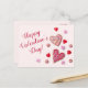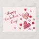 Message personnalisé Carte postale Saint-Valentin avec une variété de sucreries. Les coeurs de bonbons et les biscuits en forme de coeur décorent les cartes rose pâle. Salutation sur le devant et l'endroit pour ajouter votre propre libellé personnalisé à l'envers. Économisez en commandant en quantité .