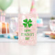 La bière St Patrick's Day peut prendre un verre avec du trèfle vintage à 4 feuilles. Cool boire du verre avec du texte personnalisé. Personnalisez avec un nom ou une citation drôle. Logo shamrock vert de la fierté irlandaise. Lunettes de boisson uniques pour la fête ou l'événement.