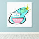 Ce Cookware Design Stretched Canvas vous fera dire, "Wow, quel extraordinaire coup de magasin d'économie!" Le boomerang moderne du milieu du siècle avec starburst jaune vif agit comme l'arrière - plan de ces plats parfaitement kitsch. Une tasse à café en jadeite, un plat casserole à couvercle typique des années 1950 au design floral bleu de fleurs, et un merveilleux bol de mélange rose flamand en marguerite en font le design idéal pour les collectionneurs vintages, les amateurs de magasins et de garage, ou tout juste des amateurs de modernité du milieu du siècle.