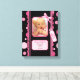 Un thème pois adorable pour bébé en motif noir et rose. Noir avec panneau avant en rayures roses et garniture d'épines à échalotes. Le panneau central a modèle photo avec arc et tag accent prêt pour votre photo bébé téléchargée. Customisez ensuite la bannière ci-dessous avec les informations et le nom de naissance de votre bébé. Version bébé garçon disponible aussi. Le texte est entièrement personnalisable par vous. Pour ajuster la couleur de police, etc., cliquez sur le lien "customiser".